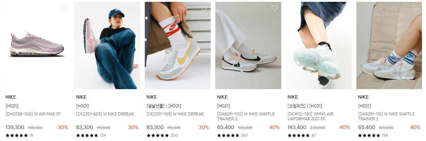 할인 품목 : 니트, 점퍼, 운동화 등