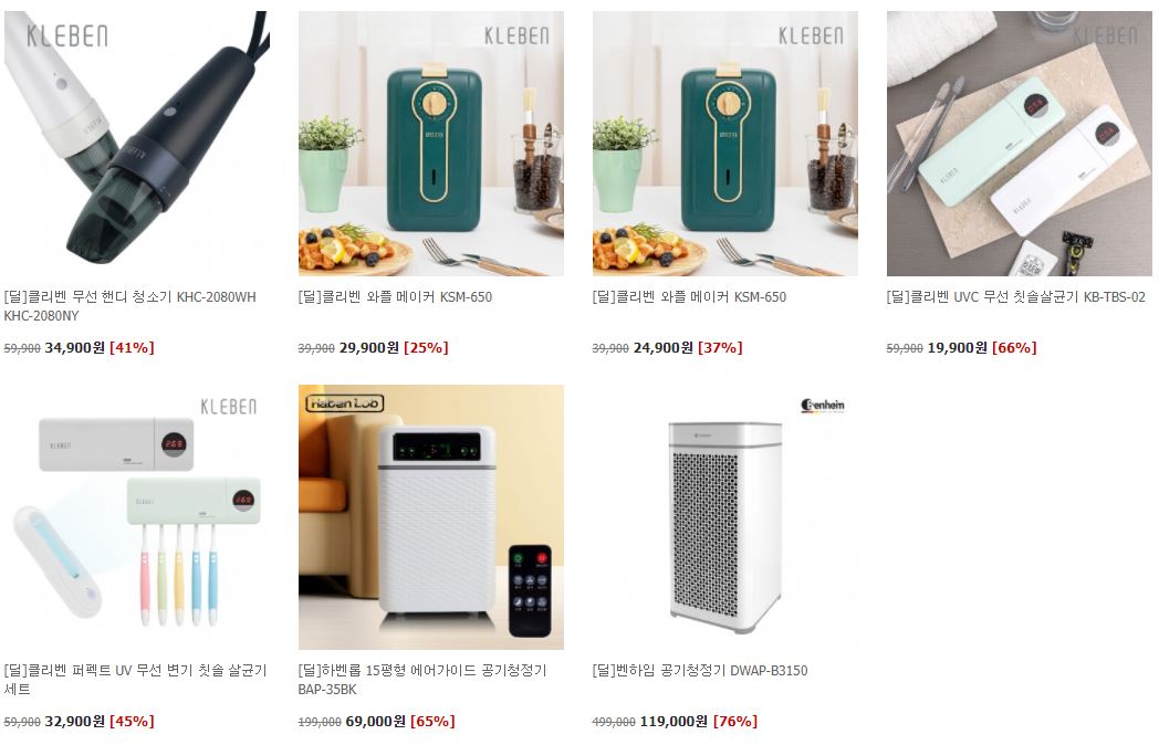 할인 품목 : 와플 메이커, 무선 핸디 청소기 등