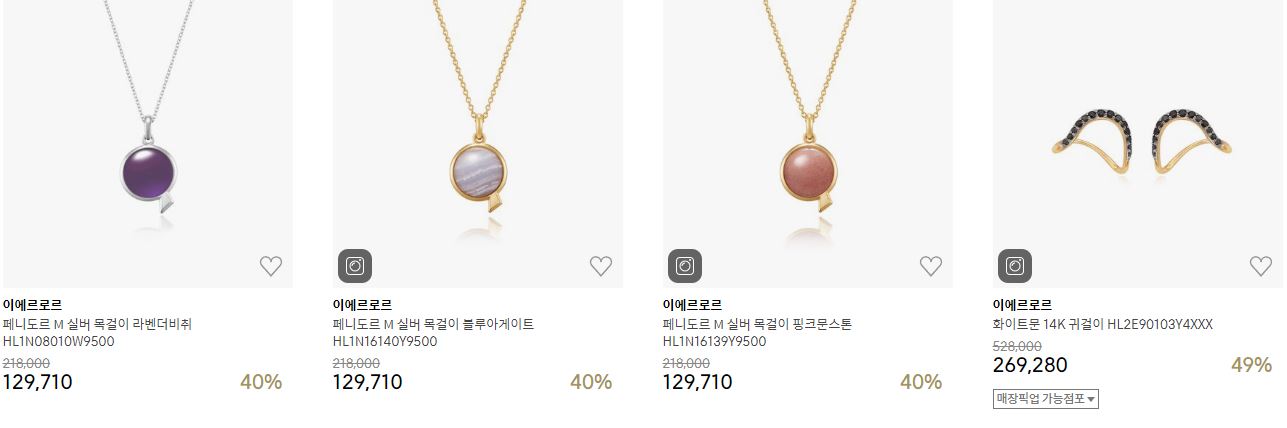 할인 품목 : 목걸이, 귀걸이 등