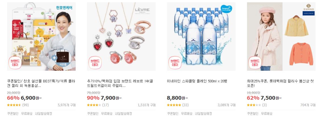할인 품목 : 가전, 의류, 화장품, 식품 등