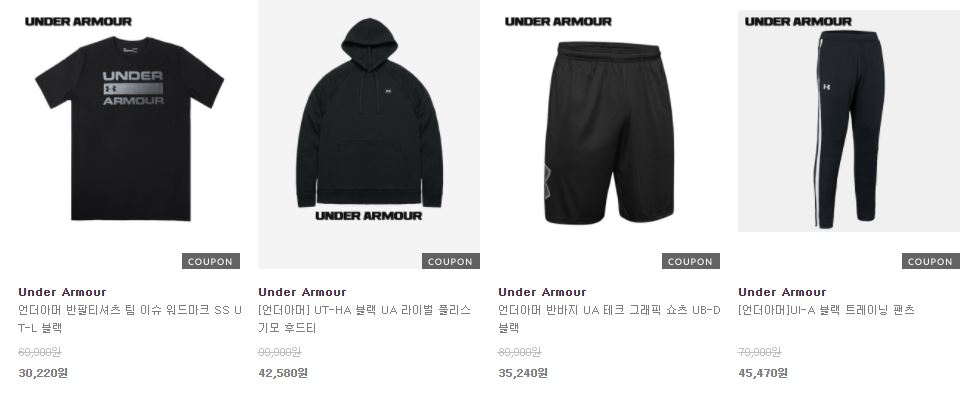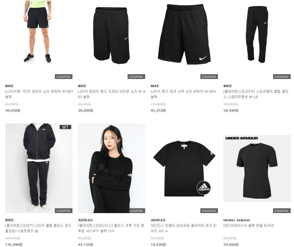 할인 품목 : 운동화, 티셔츠, 팬츠 등