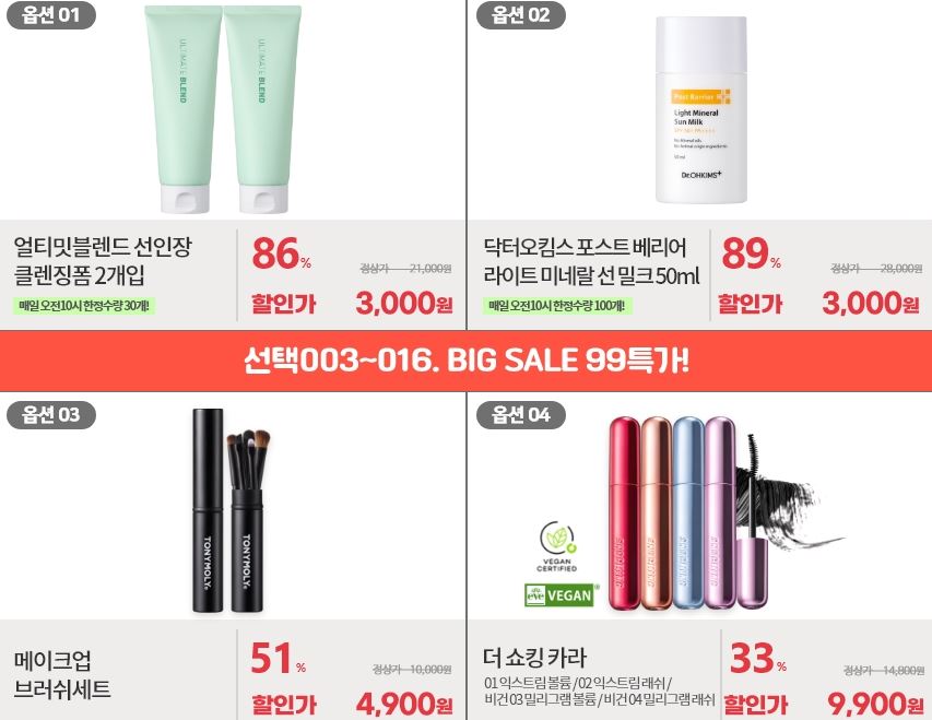할인 품목 : 클렌징폼, 마스크팩, 선크림 등