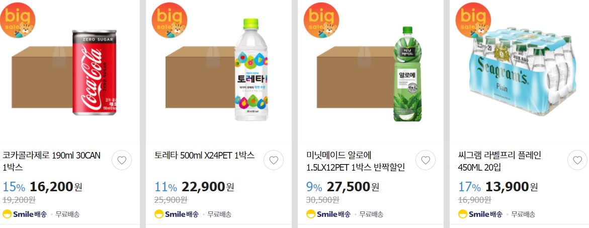 할인 품목 : 코카콜라제로, 킨사이다 등