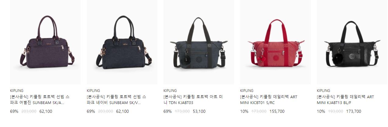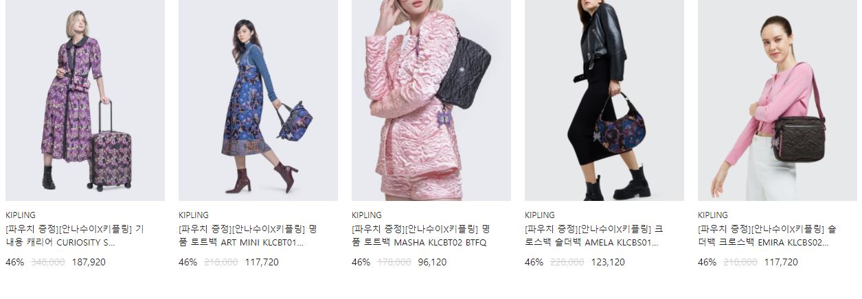 키플링 다양한 제품을 할인 판매하네요.