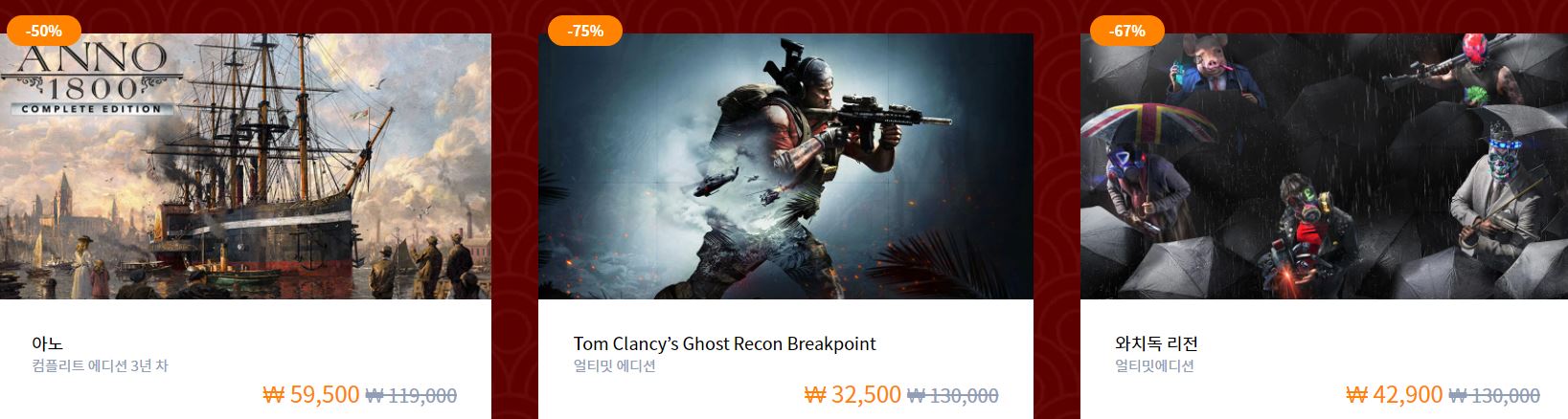 할인 게임 : 파크라이6, 어쌔신크리드발할라 등