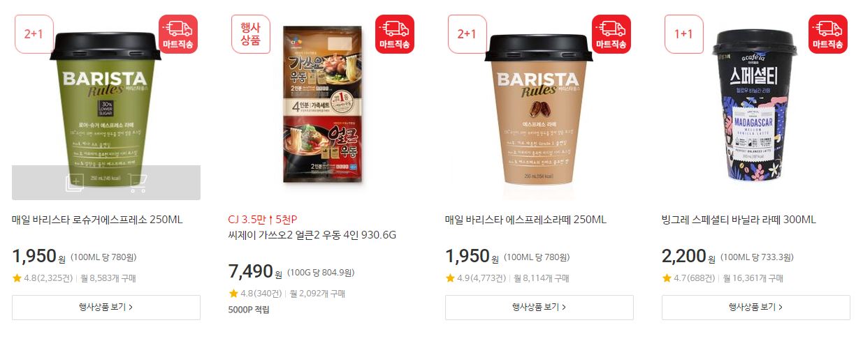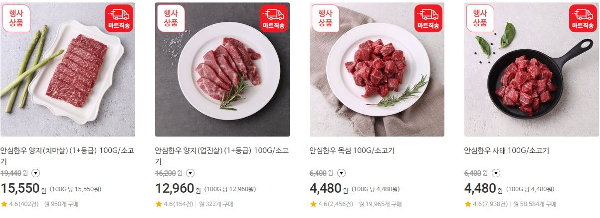 할인 품목 : 한우, 과일, 커피 등