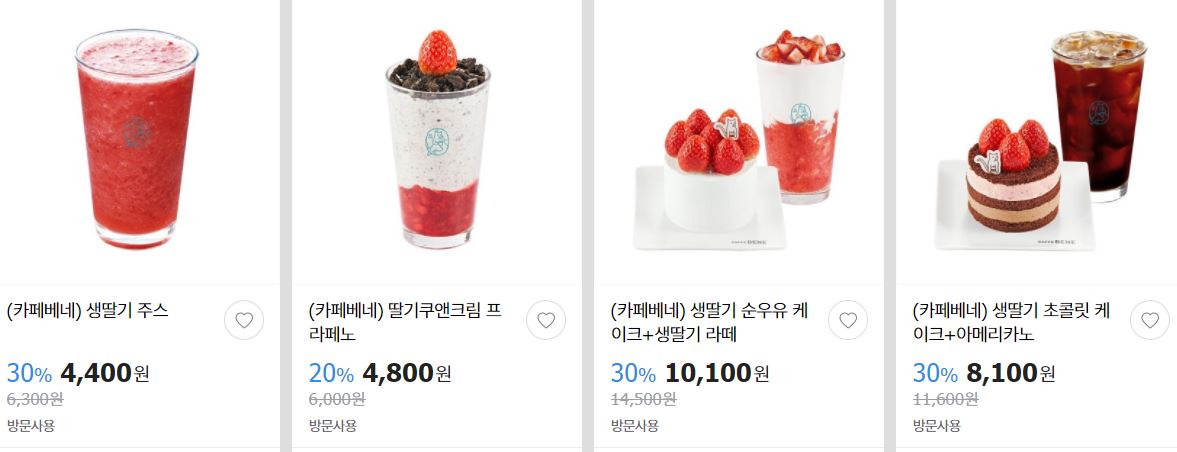 할인 브랜드 : 카페베네, 미스터피자 등