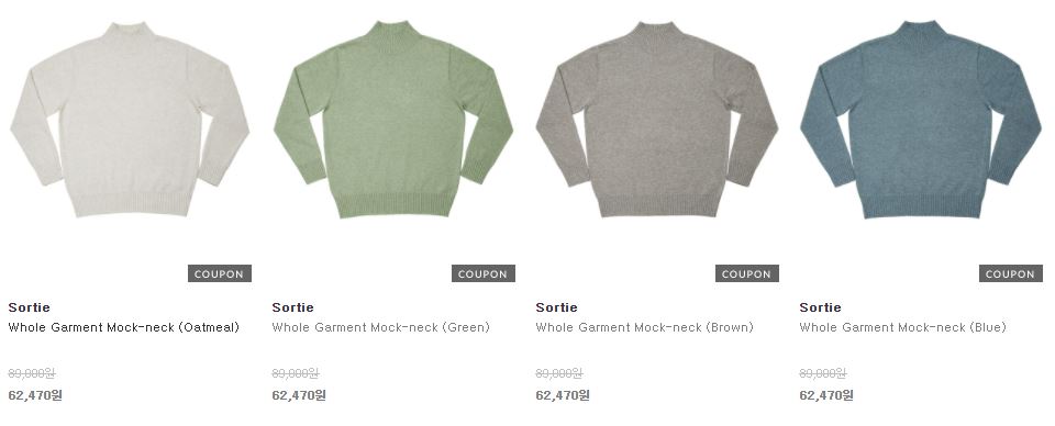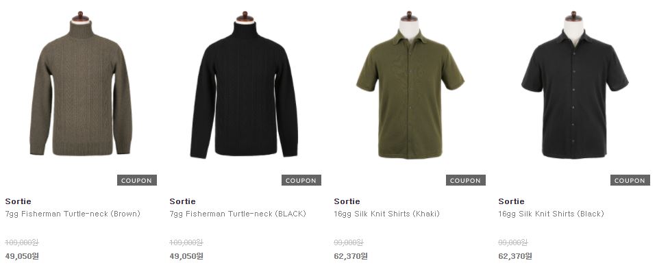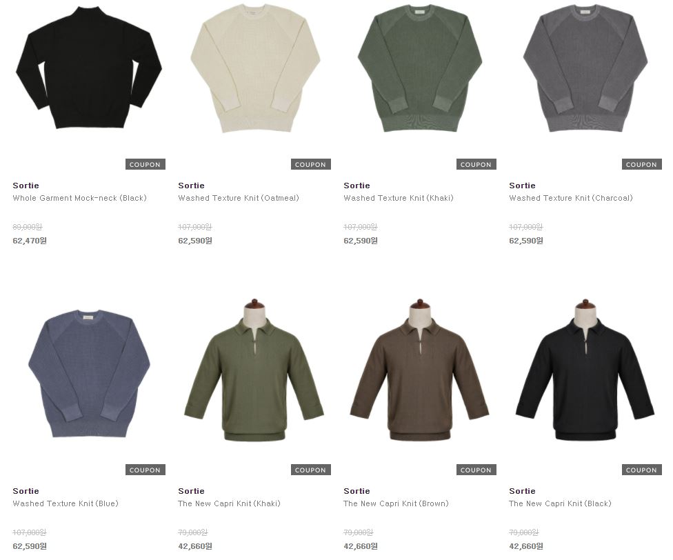 할인 품목 : 니트, 맨투맨, 팬츠 등