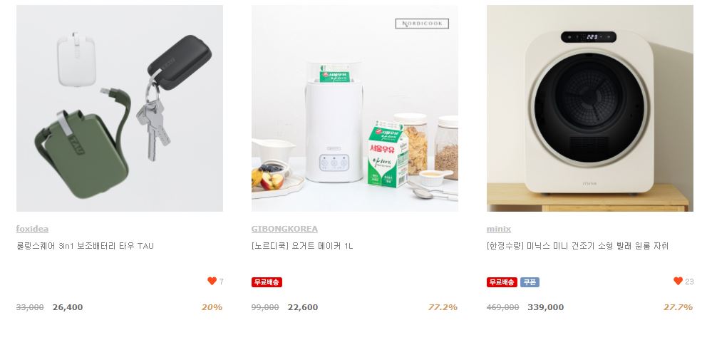 할인 품목 : 건조기, 무선충전기, 화장품 등