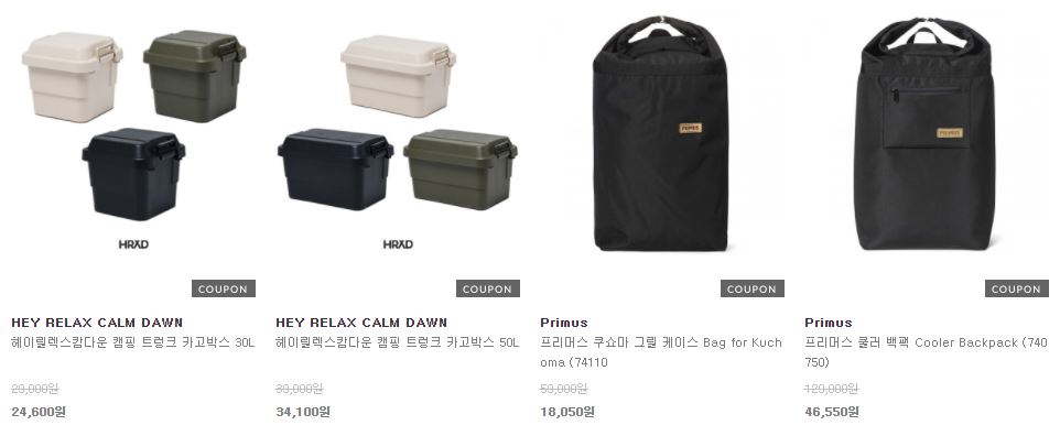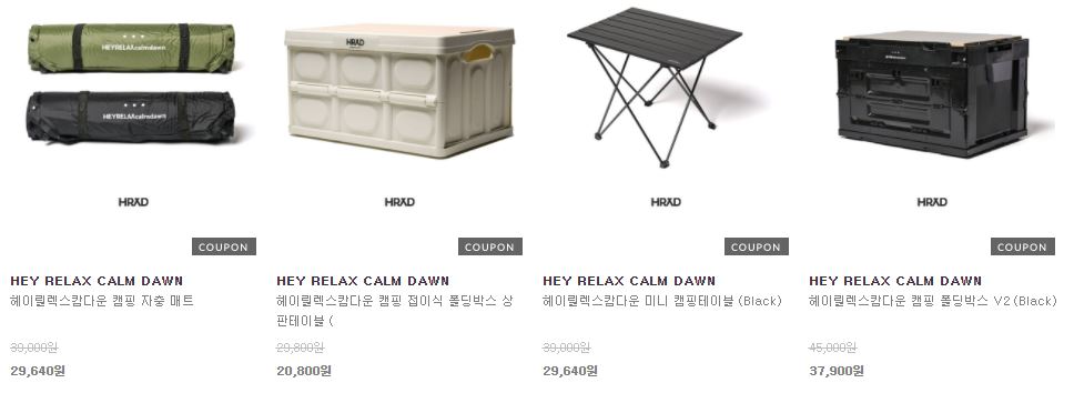 할인 품목 : 폴딩박스, 매트, 의자 등