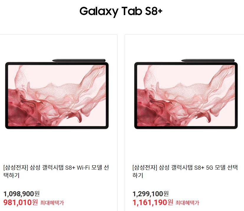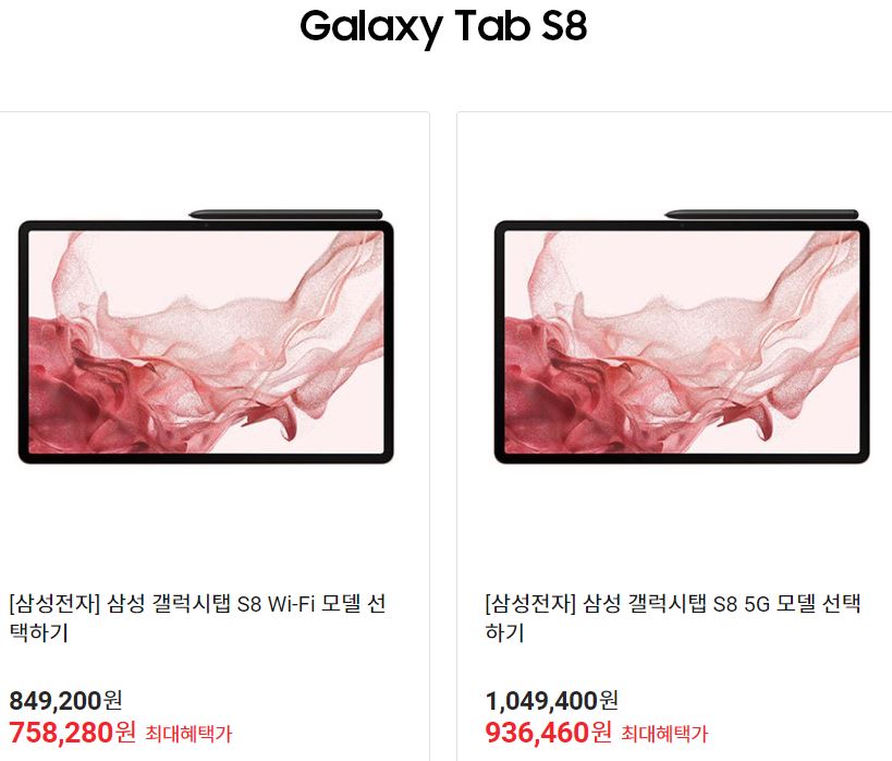 갤럭시 탭 S8 시리즈 다양한 제품을 할인 판매하네요.