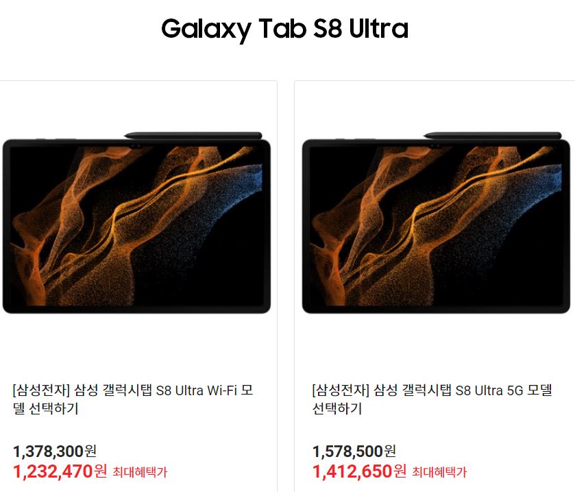 갤럭시 탭 S8 시리즈 다양한 제품을 할인 판매하네요.