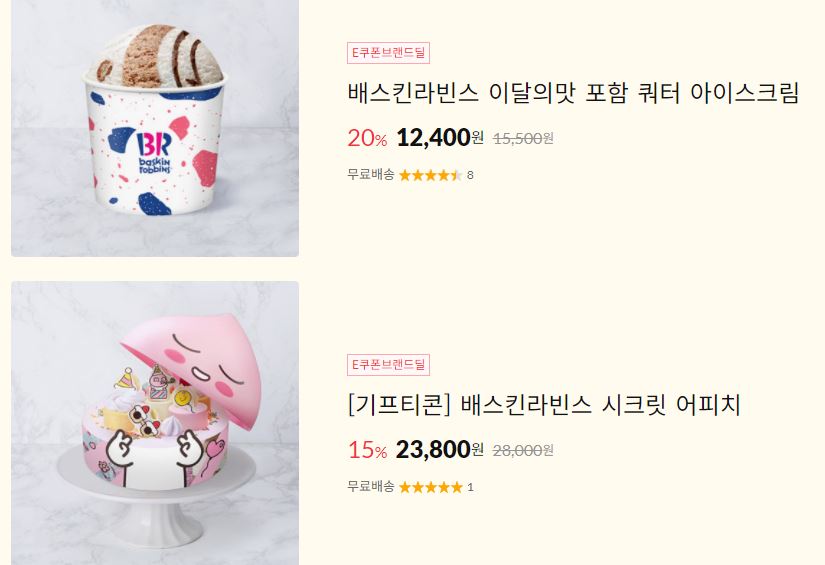 할인 브랜드 : 배스킨라빈스, 파리바게뜨 등