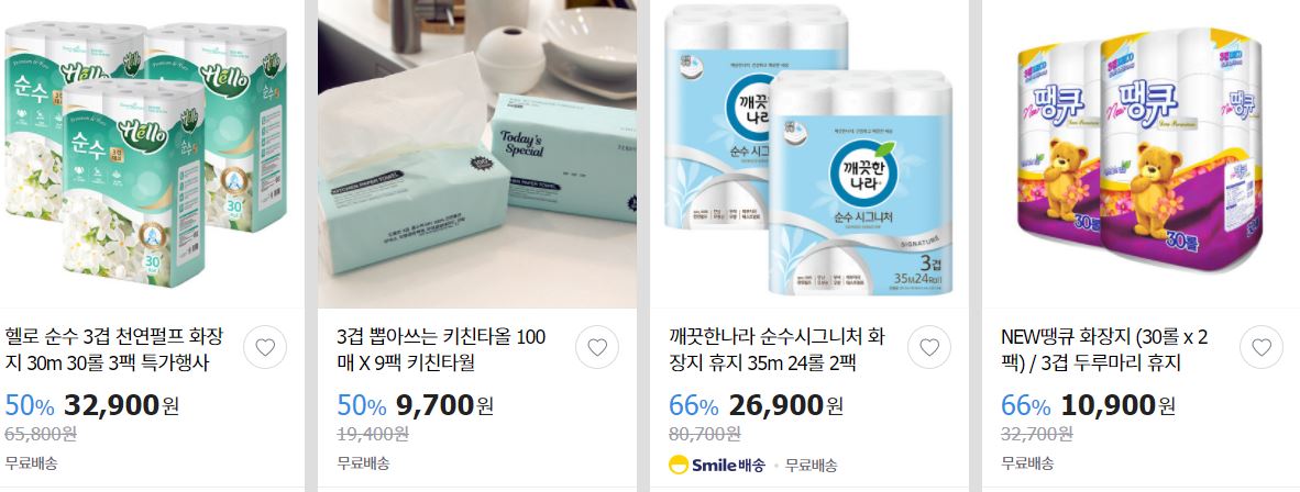 할인 품목 : 휴지, 치약 등