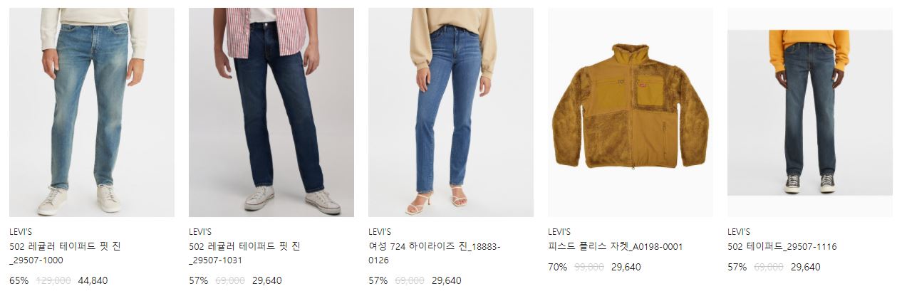 리바이스 다양한 제품을 할인 판매하네요.