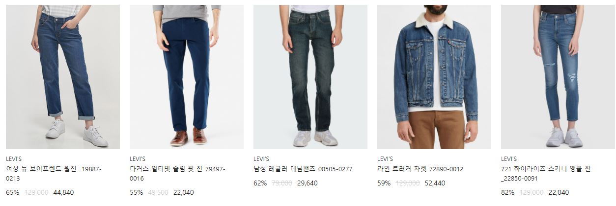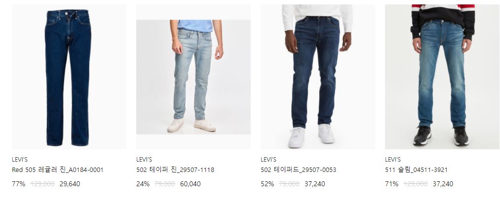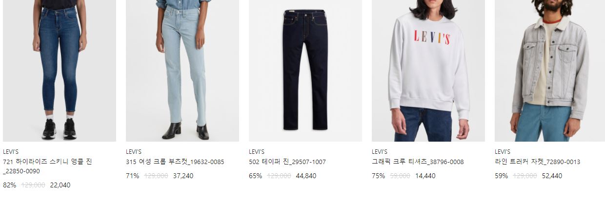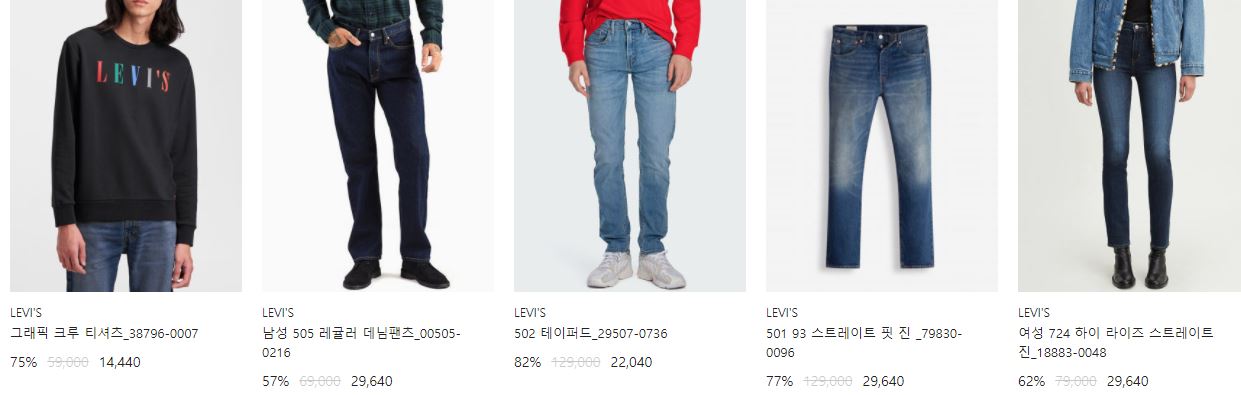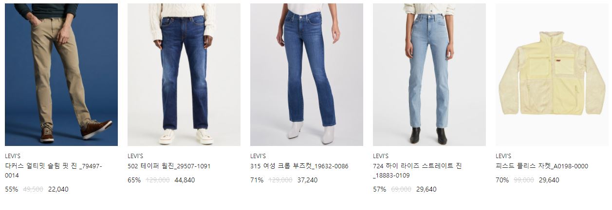 리바이스 다양한 제품을 할인 판매하네요.