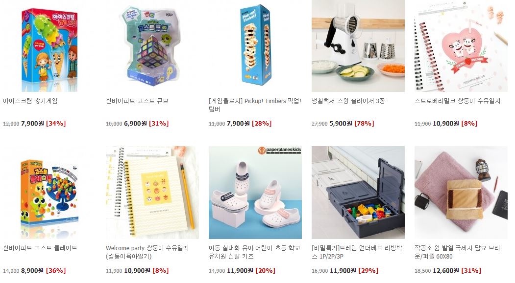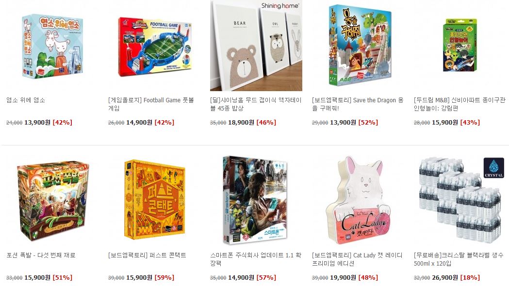 할인 품목 : 보드게임, 생활용품 등