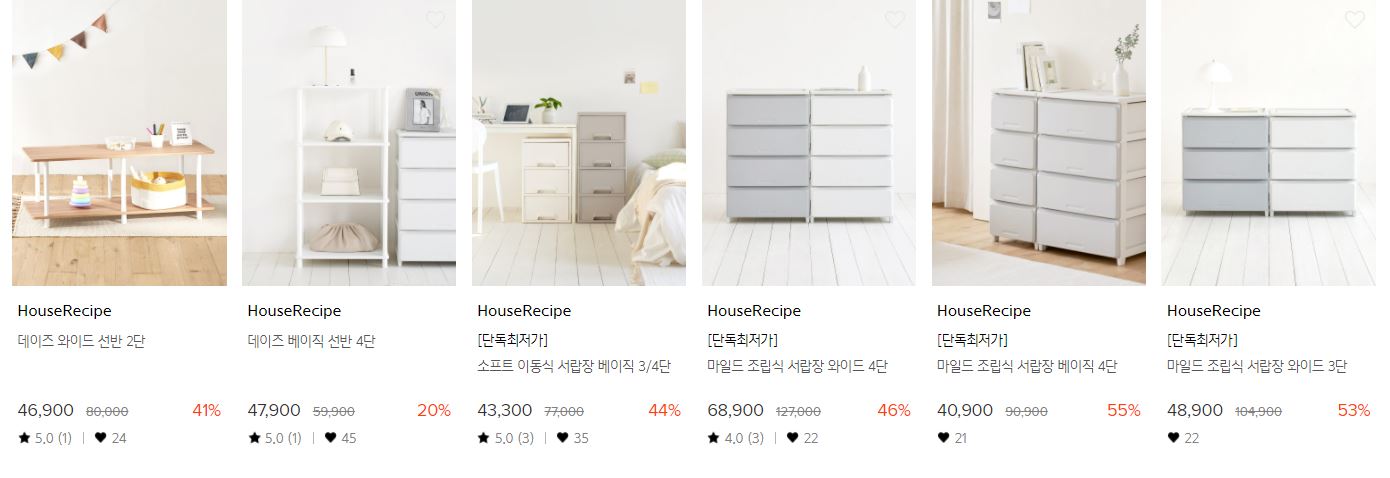 하우스레시피 다양한 제품을 할인 판매하네요.