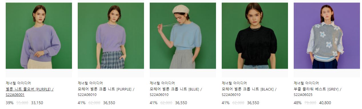 할인 품목 : 셔츠, 니트, 모자 등