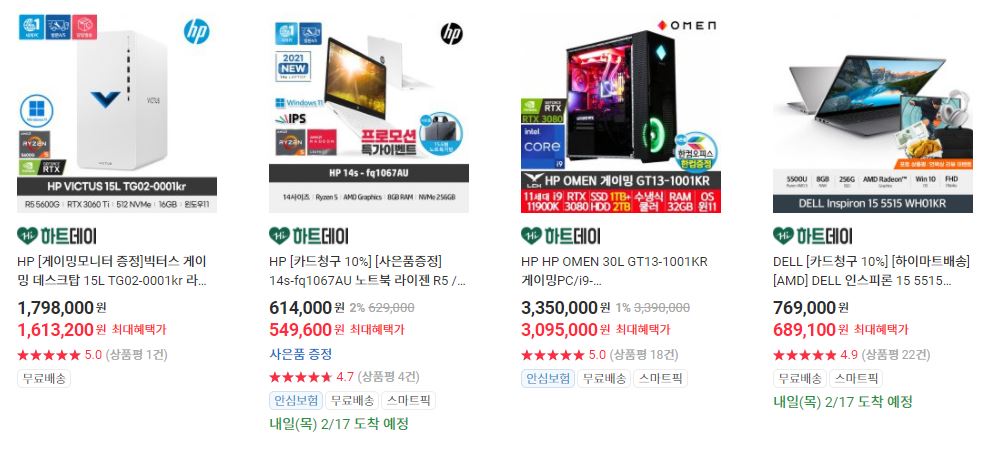 | HP 파빌리온 TG01-2003kr 할인 (0) | 2022.02.15 |