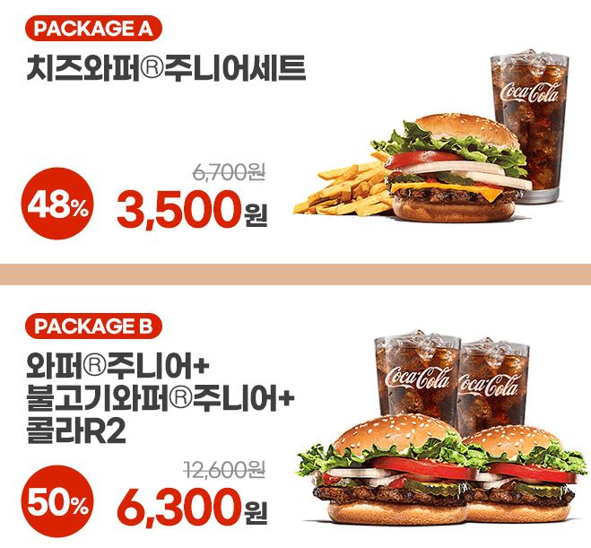 할인 메뉴 : 치즈와퍼주니어세트 등