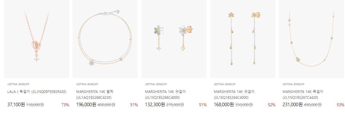 할인 품목 : 목걸이, 귀걸이, 시계 등