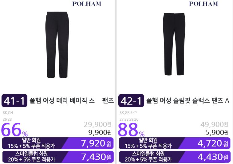할인 품목 : 티셔츠, 자켓, 팬츠 등