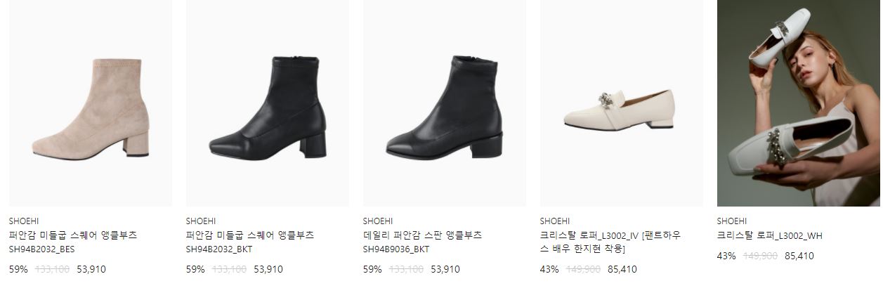 할인 품목 : 운동화, 구두, 머플러 등