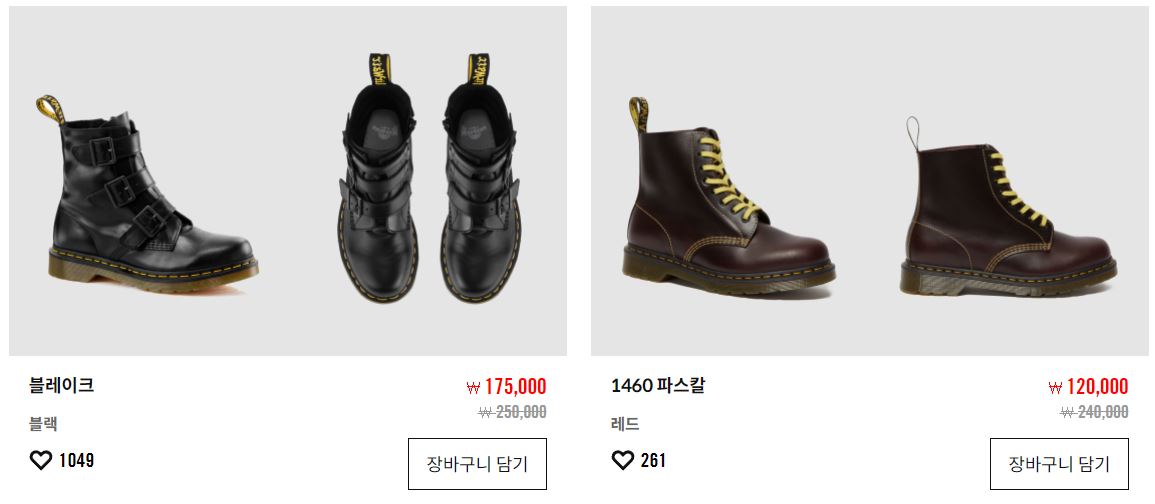 닥터마틴 다양한 제품을 할인 판매하네요.