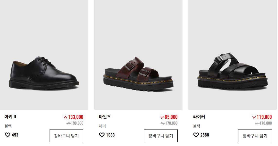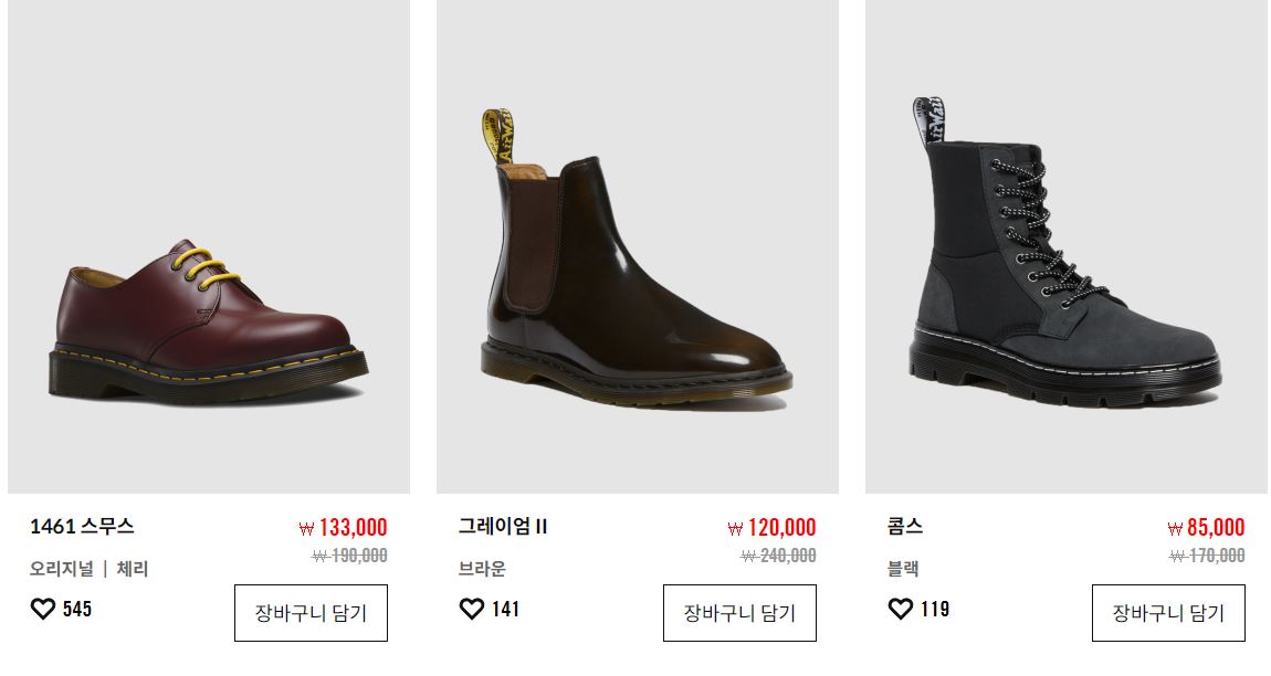 닥터마틴 다양한 제품을 할인 판매하네요.