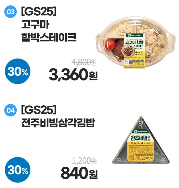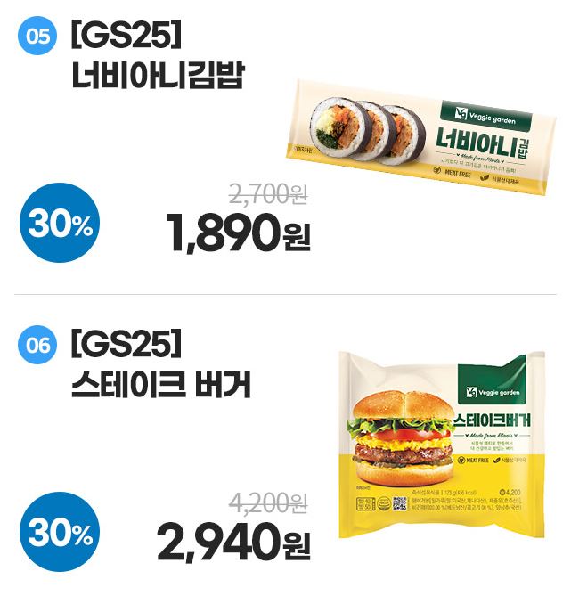 할인 품목 : 너비아니김밥, 스테이크 버거 등