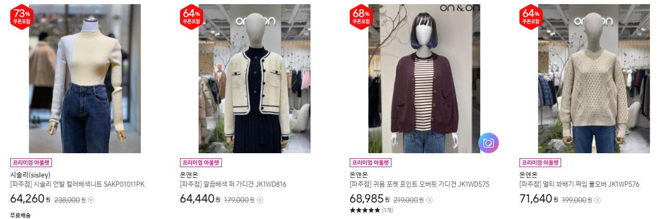 할인 품목 : 자켓, 코트, 원피스 등