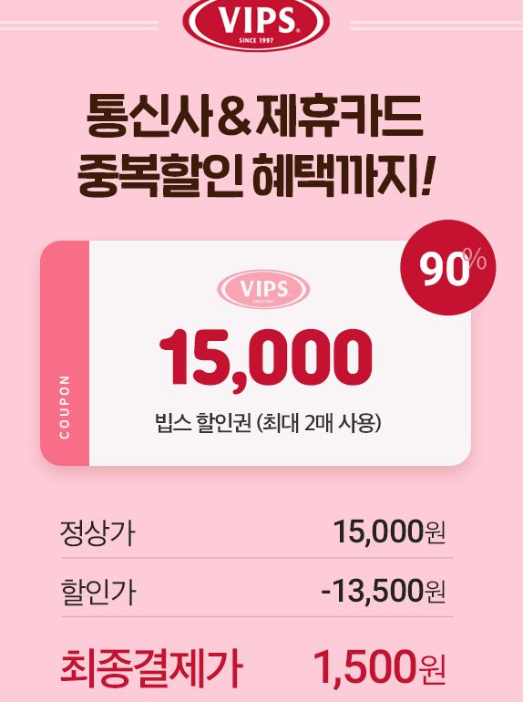 빕스 15,000원 할인권 90% 할인 정보 포스팅입니다.