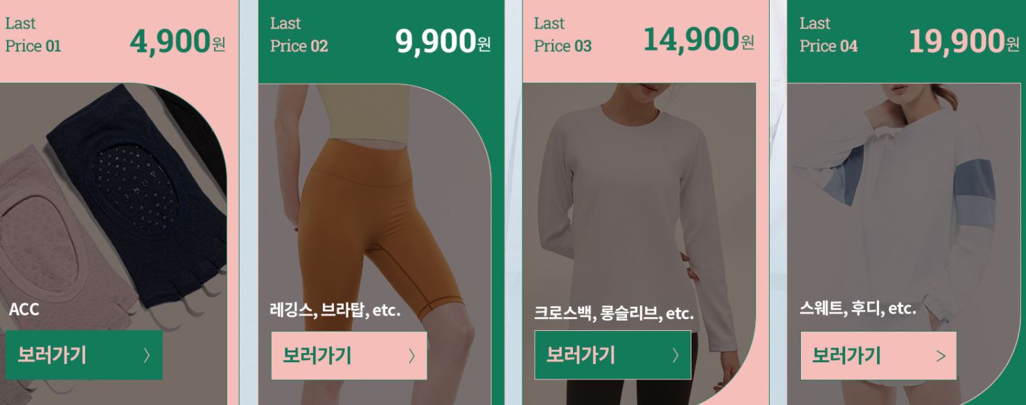 할인 품목 : 레깅스, 자켓, 티셔츠 등