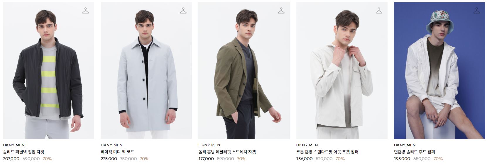 할인 품목 : 코트, 자켓, 티셔츠 등