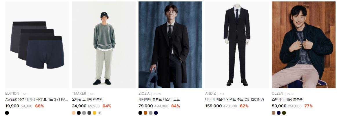 할인 품목 : 티셔츠, 팬츠, 셔츠 등