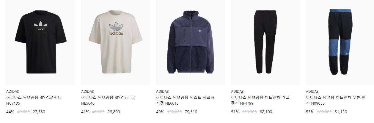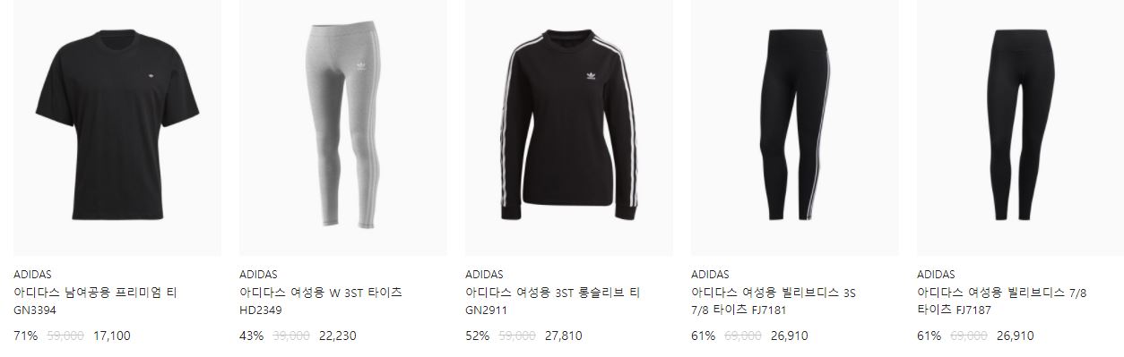 할인 품목 : 운동화, 티셔츠, 팬츠 등