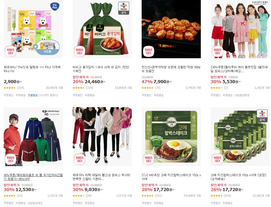 위메프 사이트에서 할인 이벤트를 진행하네요.
