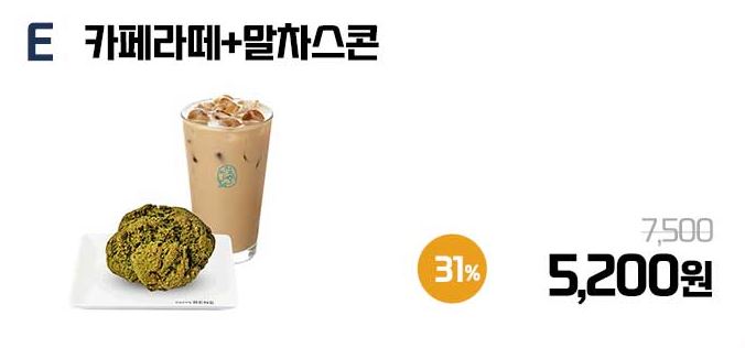 할인 메뉴 : 치즈버블라떼+말차스콘, 아메리카노+홍차스콘 등