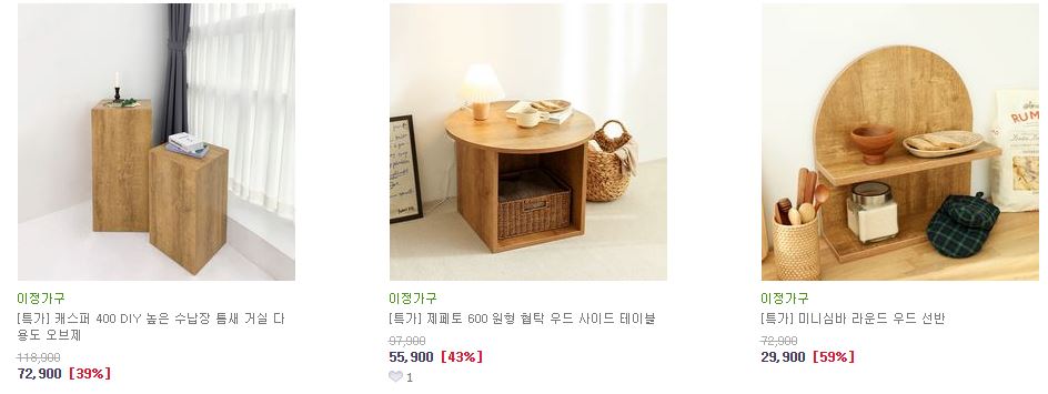 할인 품목 : 세제, 이불, 가구, 운동화 등