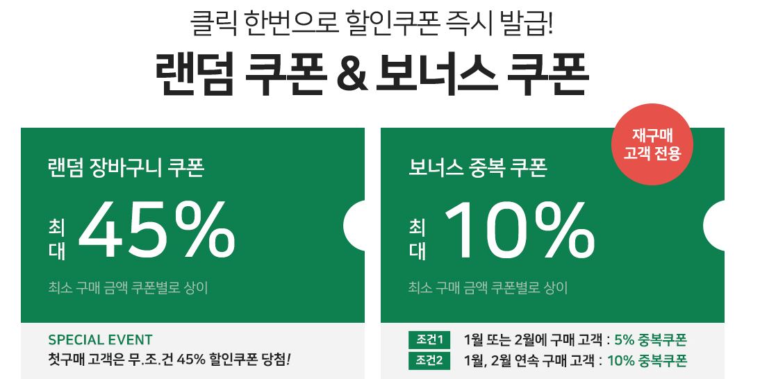 최대 45% 랜덤쿠폰 증정