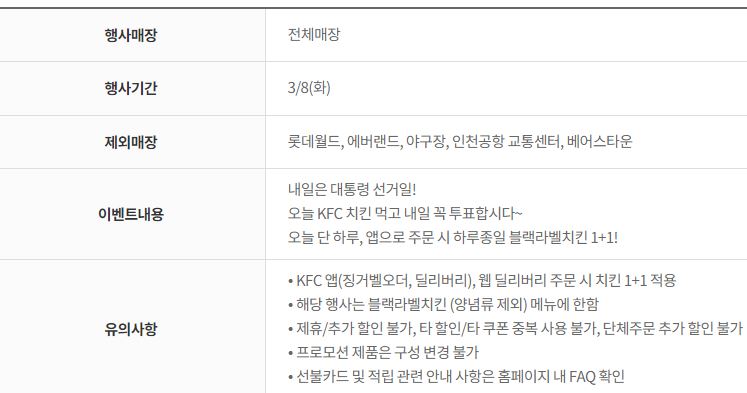 KFC 올데이 블랙라벨 치킨 1+1 이벤트 정보 포스팅입니다.