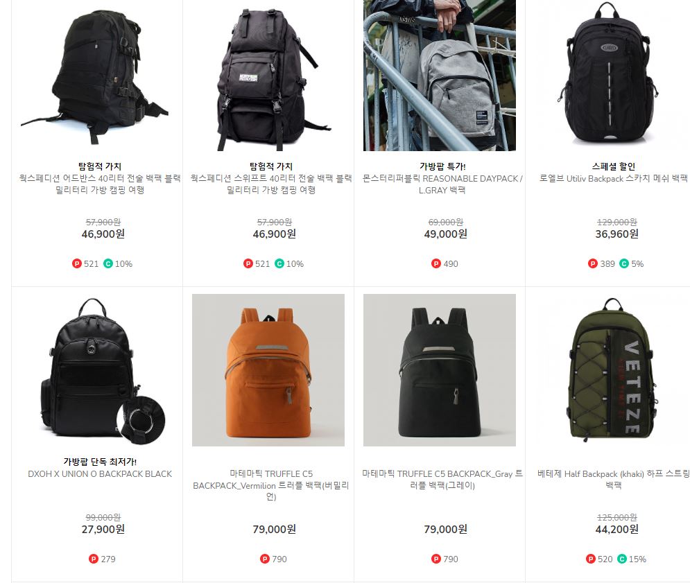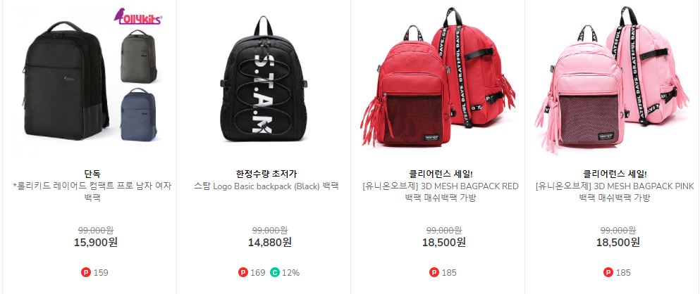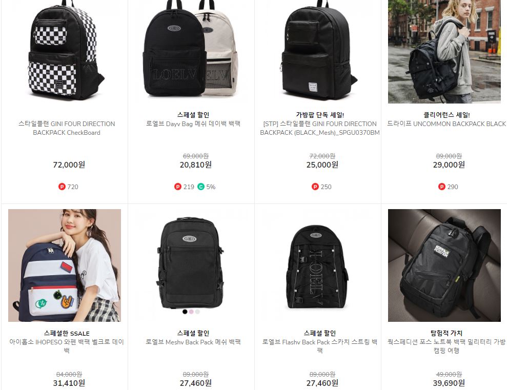 할인 품목 : 백팩, 메신저백 등
