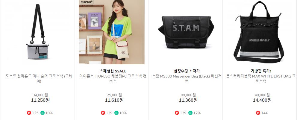 할인 품목 : 백팩, 메신저백 등