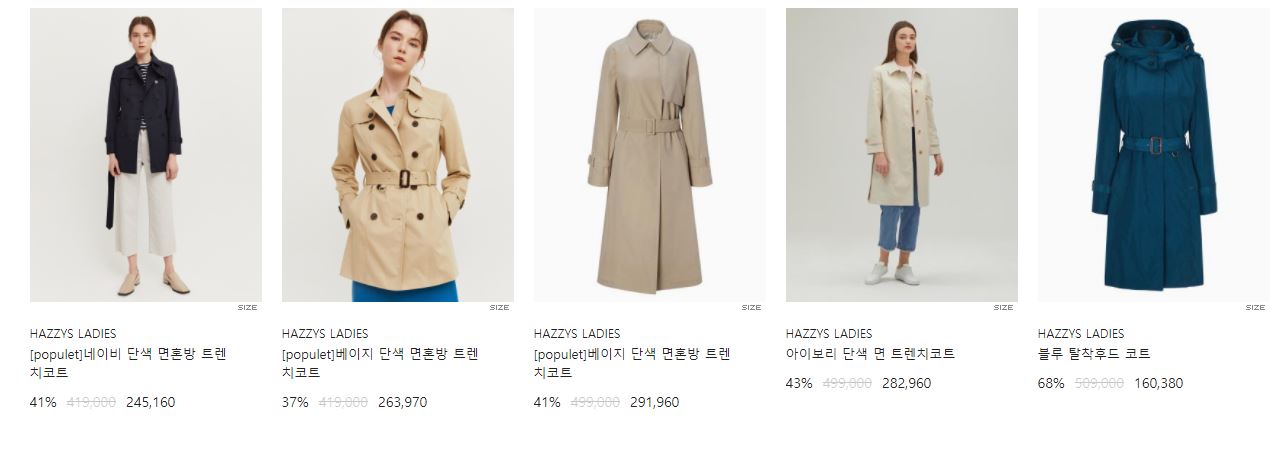 할인 품목 : 코트, 원피스, 셔츠 등