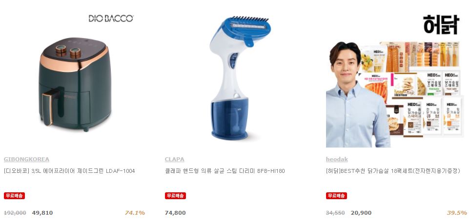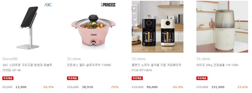 할인 품목 : 에어프라이어, 커피메이커 등