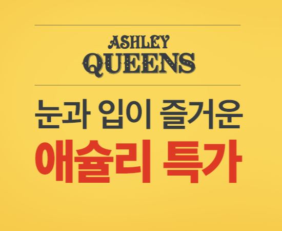애슐리 퀸즈 다양한 제품을 할인 판매하네요.
