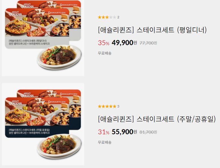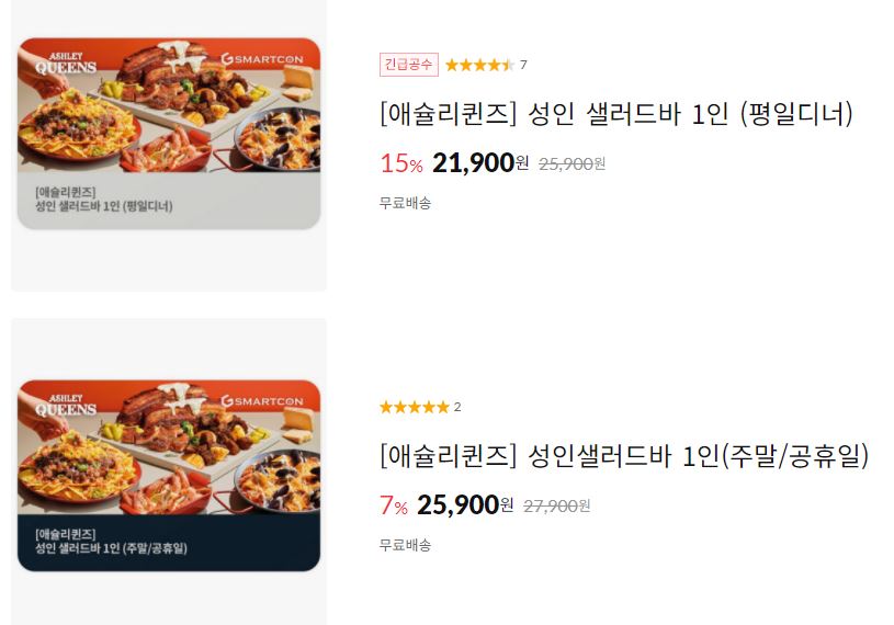 할인 품목 : 스테이크세트, 샐러드바 이용권 등