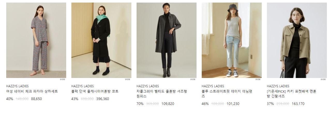헤지스 다양한 제품을 할인 판매하네요.