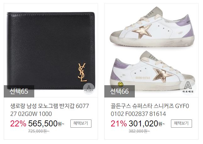 할인 품목 : 자켓, 지갑, 티셔츠 등